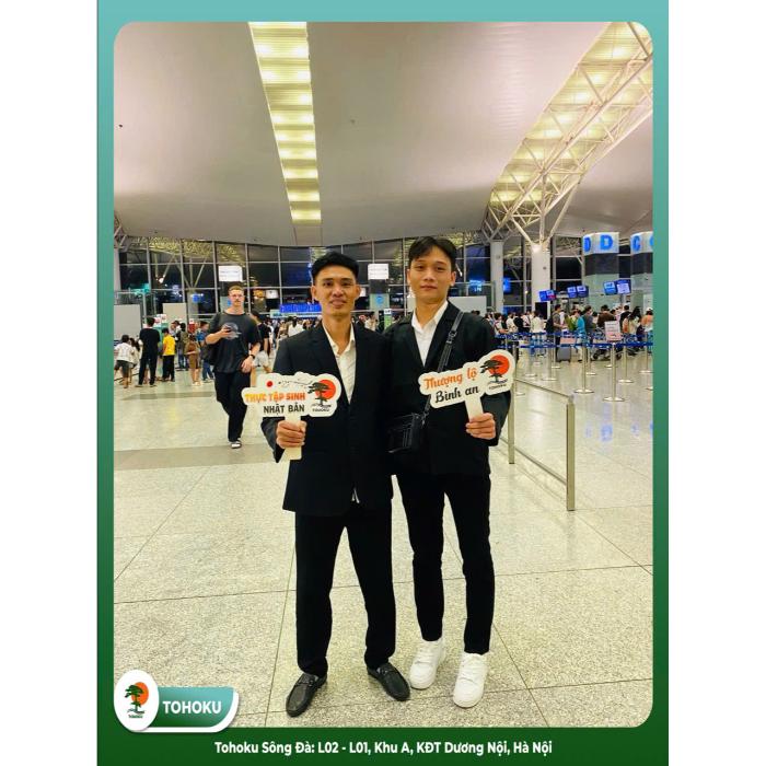 Ngày 07/10/2025, Công ty Cổ phần Tohoku Sông Đà hân hoan thông báo tin vui: Hai học viên Nguyễn Văn Hồ và Đinh Thiên Bảo đã chính thức nhập cảnh sang Nhật Bản vào sáng 7/10/2025, bắt đầu công việc dán giấy tường, tại thủ đô Tokyo. Đây là thành quả xứng đáng sau quãng thời gian hai bạn kiên trì học tập, rèn luyện và chuẩn bị kỹ lưỡng cho hành trình quan trọng này.