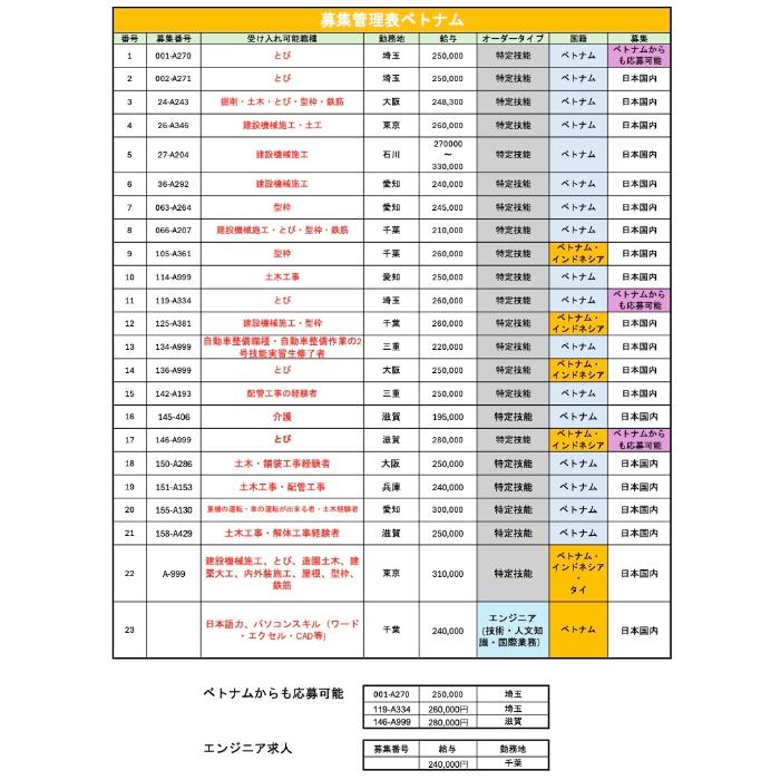 Lương cơ bản: 250.000 Yên/tháng (chưa tính tăng ca)