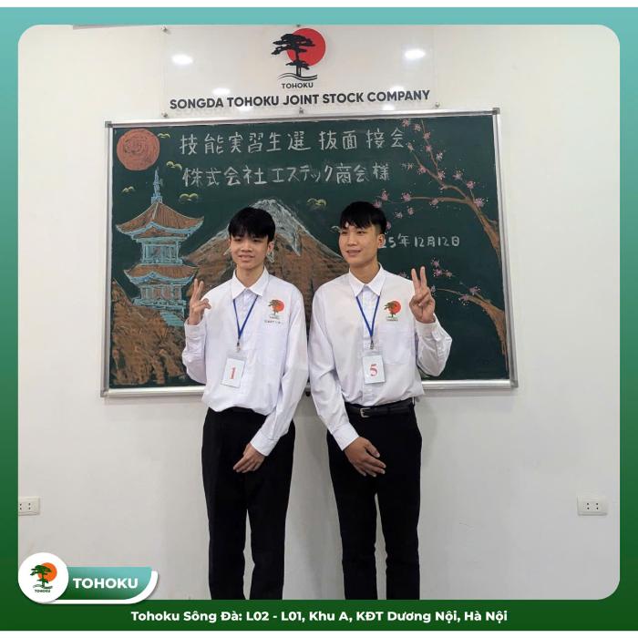 Chúc mừng 2 bạn đã chính thức trở thành Thực tập sinh Nhật Bản và gia nhập thành viên Nhà Tohoku. Hãy học và rèn luyện tiếng Nhật thật chăm chỉ để có một hành trang tốt trước khi xuất cảnh các bạn nhé!