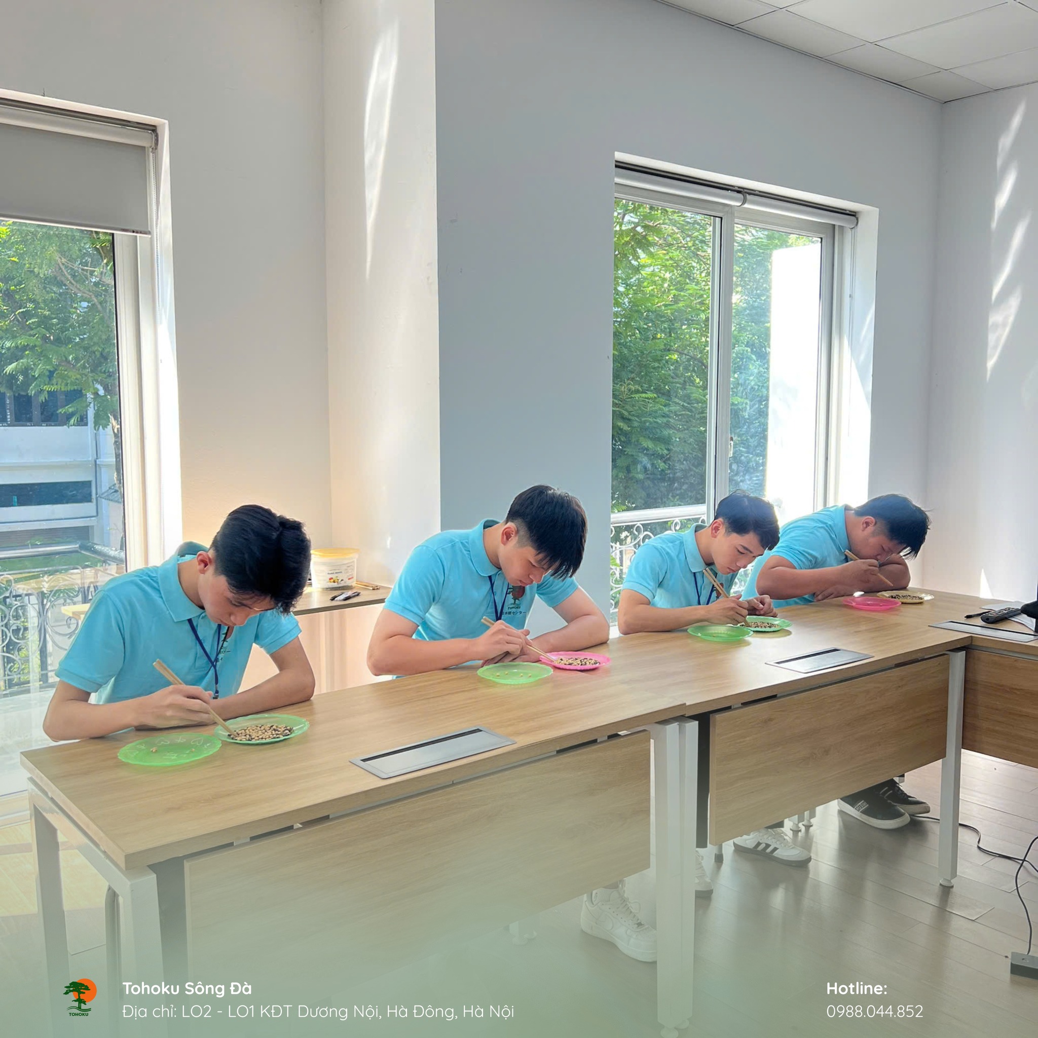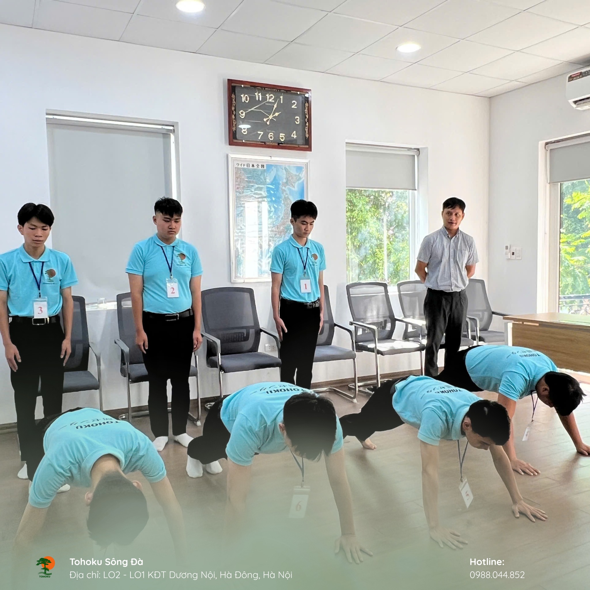 Ngoài phần tự giới thiệu bản thân, các ứng viên còn trải qua những bài kiểm tra đặc thù như chống đẩy để đánh giá thể lực, hay bài kiểm tra gắp đỗ nhằm thử thách sự nhanh nhẹn, khéo léo và tính cẩn thận. Những thử thách này không chỉ kiểm tra kỹ năng, mà còn thể hiện rõ sự nỗ lực và tinh thần nghiêm túc của từng bạn trong hành trình chinh phục cơ hội làm việc tại Nhật Bản.