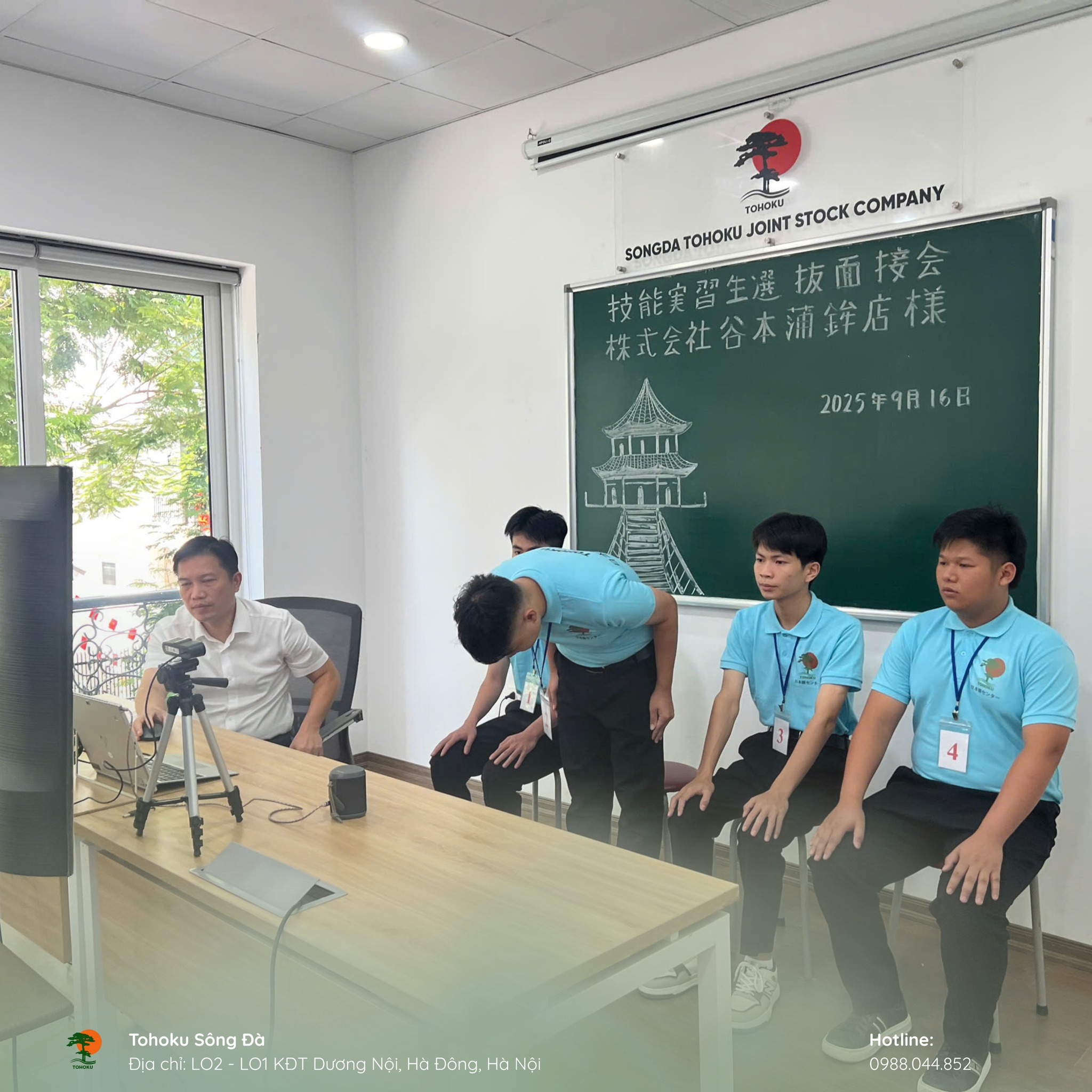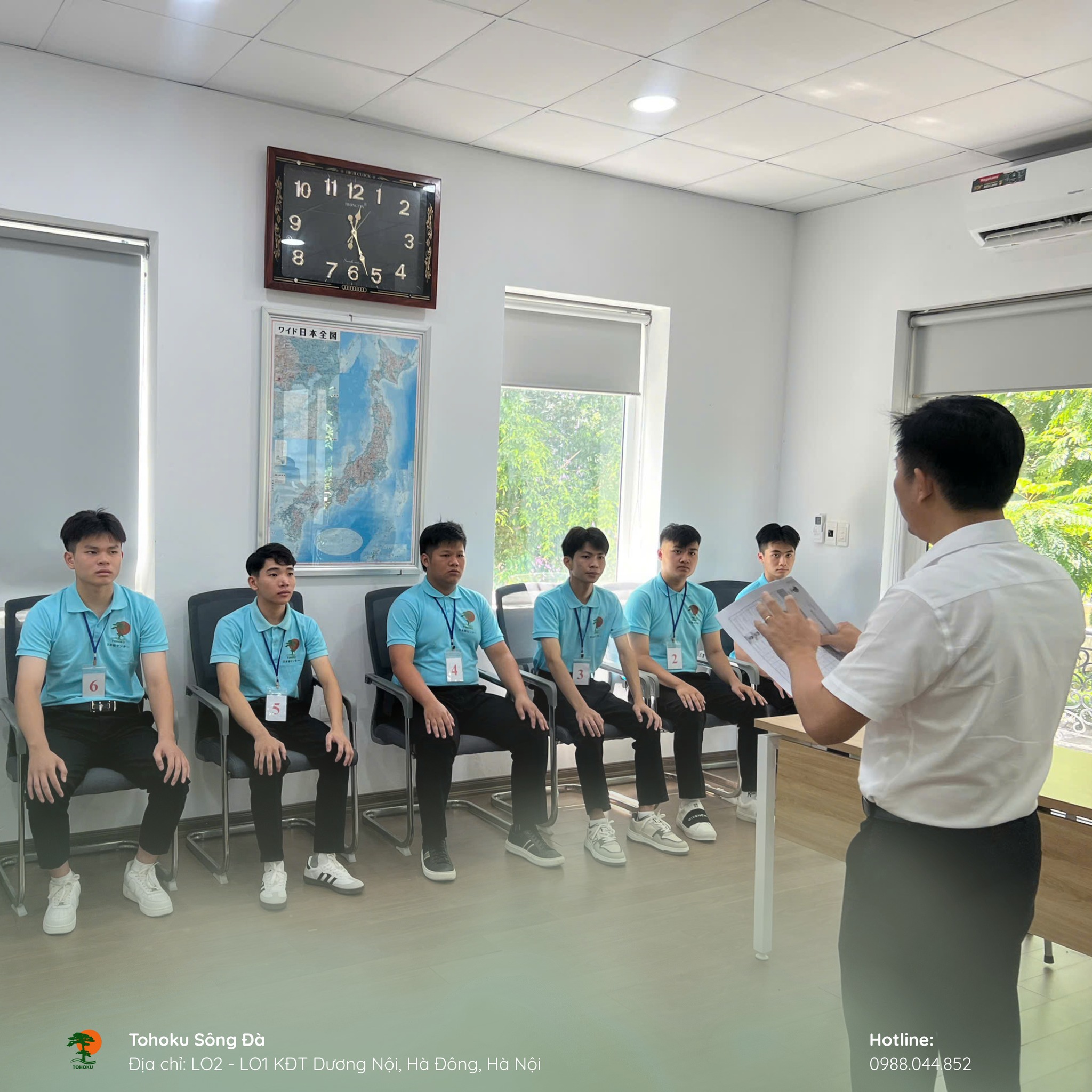 Ngày hôm nay, Tohoku Sông Đà đã tổ chức buổi phỏng vấn đơn hàng chế biến thực phẩm - thủy hải sản với sự tham gia của 07 ứng viên. Không khí buổi phỏng vấn diễn ra sôi nổi và nghiêm túc, khi các bạn trẻ đều đặt quyết tâm rất cao để giành lấy 03 suất làm việc tại tỉnh Ehime, Nhật Bản.