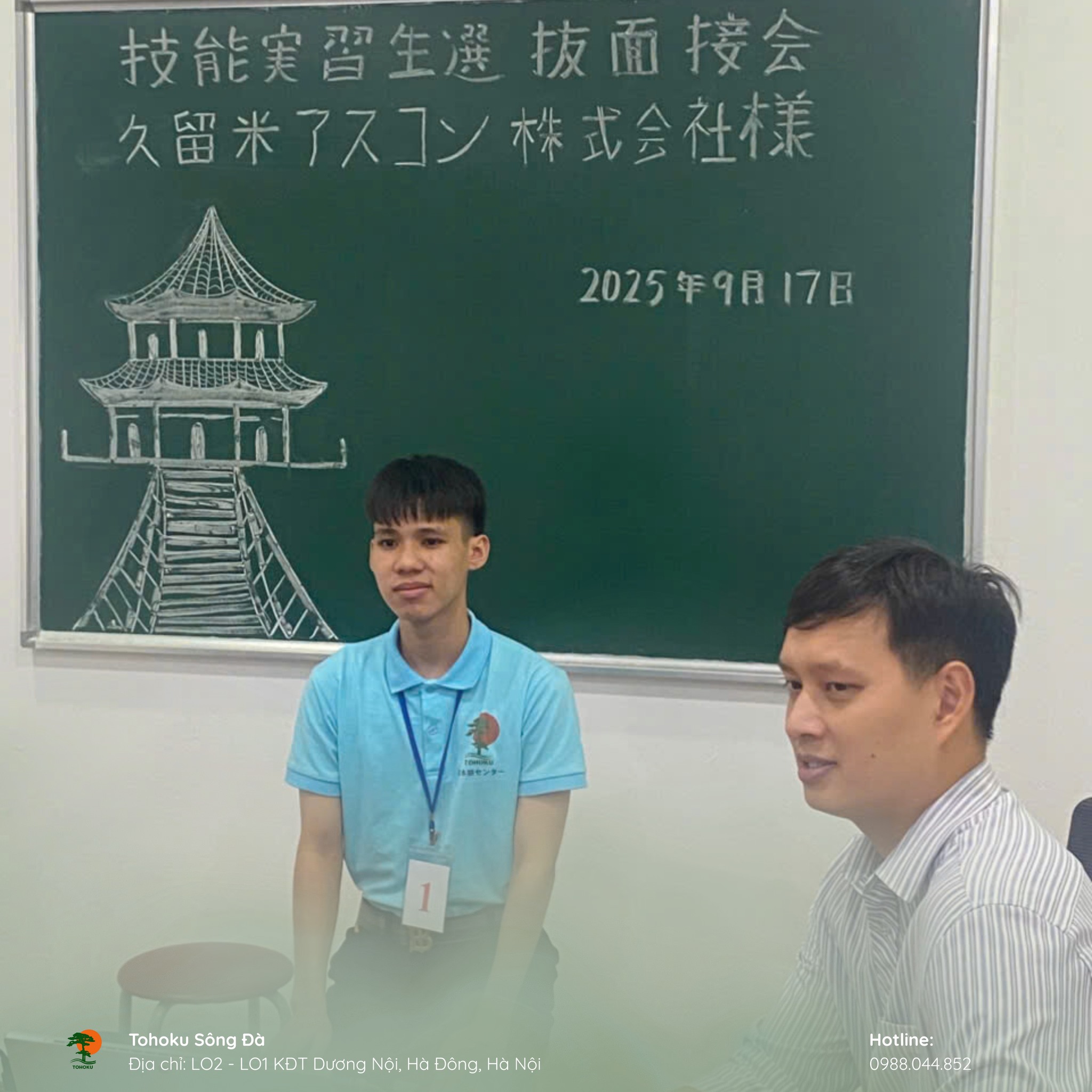 Buổi phỏng vấn diễn ra với sự cạnh tranh cao khi có 2 ứng viên tham gia nhưng chỉ tuyển chọn duy nhất 1 người. Với sự tự tin, tinh thần quyết tâm và khả năng thể hiện ấn tượng, Trần Vinh Quang đã xuất sắc vượt qua thử thách, trở thành ứng viên duy nhất được lựa chọn. Đây là kết quả xứng đáng cho những nỗ lực học tập, rèn luyện nghiêm túc của bạn trong suốt thời gian tại Tohoku Sông Đà.