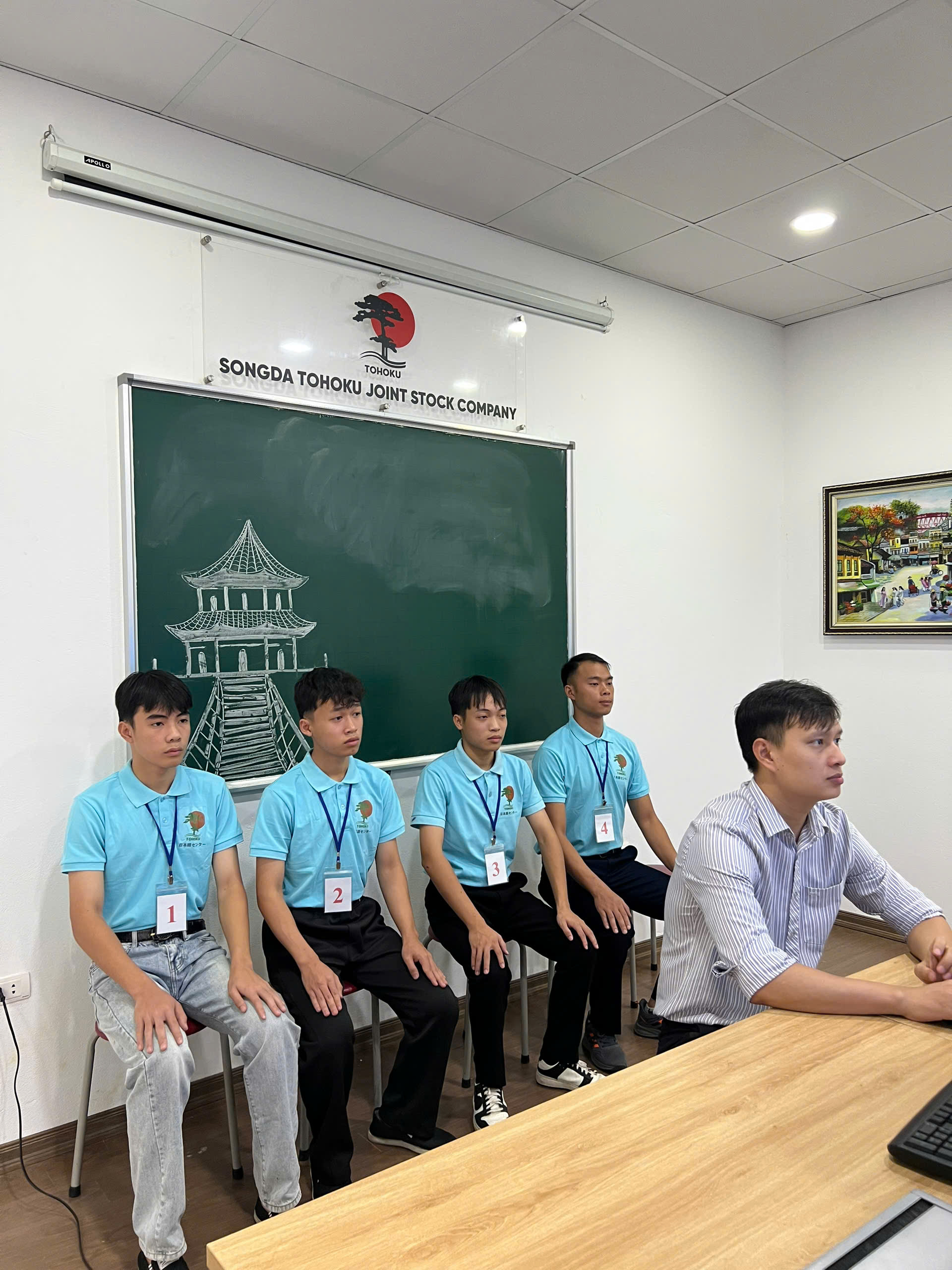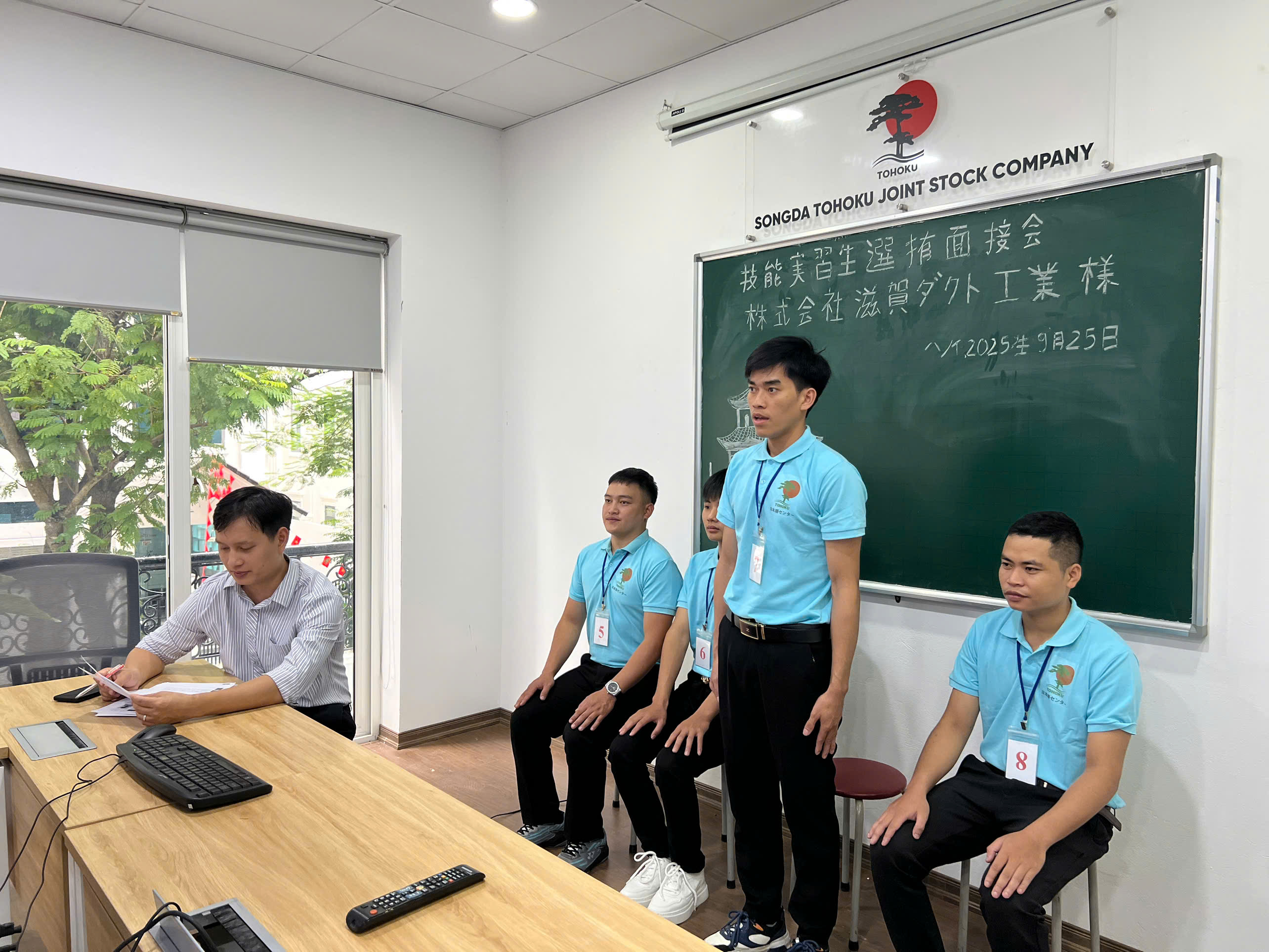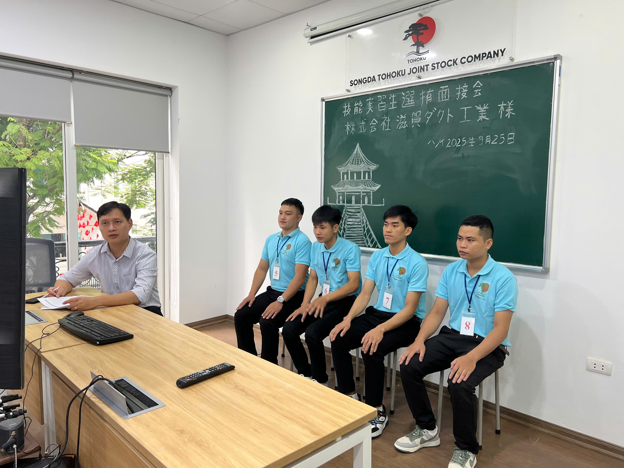 Tham gia buổi phỏng vấn lần này có 8 bạn nam - những ứng viên đã trải qua thời gian học tập, rèn luyện kỹ năng và tiếng Nhật tại trung tâm. Trong số đó, xí nghiệp sẽ lựa chọn 3 - 4 bạn phù hợp nhất để tiếp tục hành trình làm việc tại Nhật Bản.