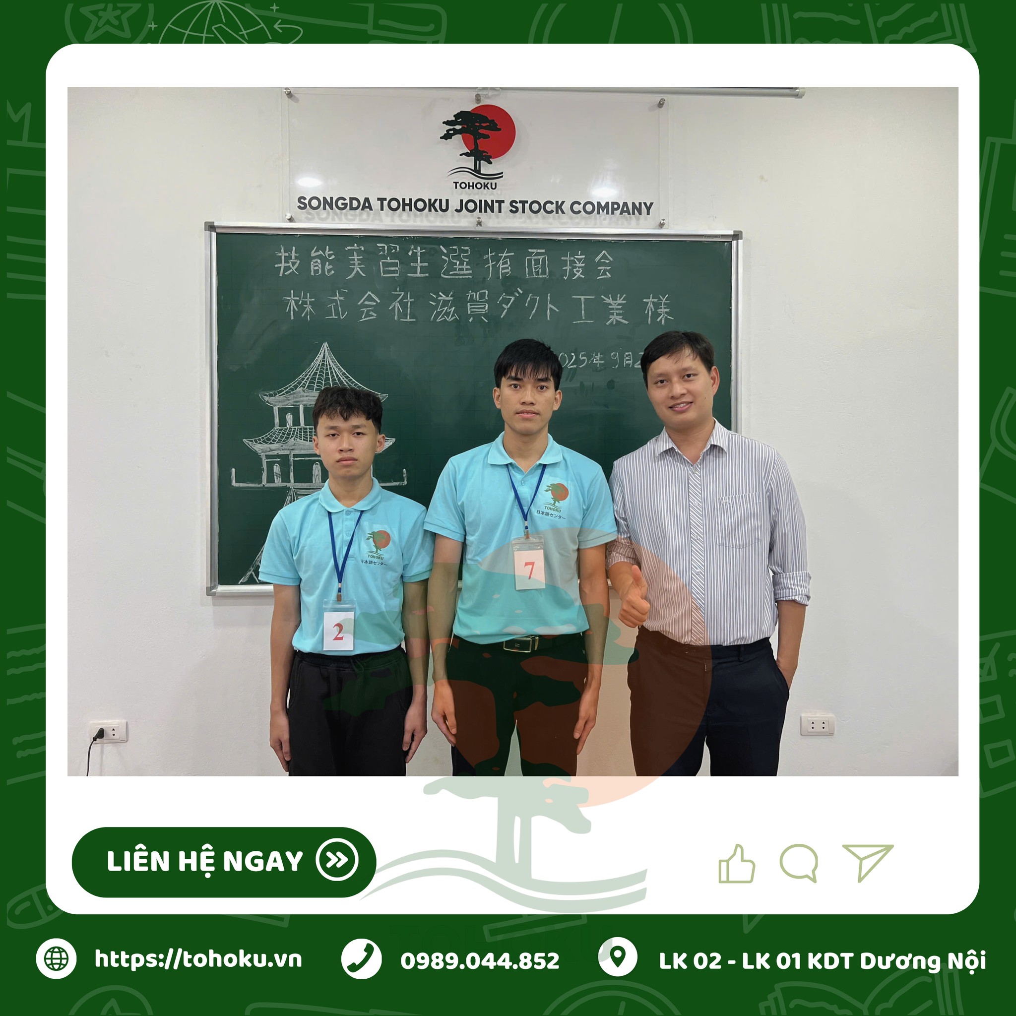 Tohoku Sông Đà trân trọng gửi lời chúc mừng đến hai bạn Vẩn A Lòng và Vì Văn Hải. Việc vượt qua vòng phỏng vấn và nhanh chóng bước vào giai đoạn hoàn thiện hồ sơ là minh chứng cho sự quyết tâm và nỗ lực của các bạn. Chúng tôi tin rằng, với sự đồng hành tận tâm từ đội ngũ cán bộ, đặc biệt là sự hướng dẫn của chị Tường Anh, hai bạn sẽ sớm hoàn thành mọi thủ tục một cách suôn sẻ để sẵn sàng cho hành trình phía trước tại Nhật Bản.