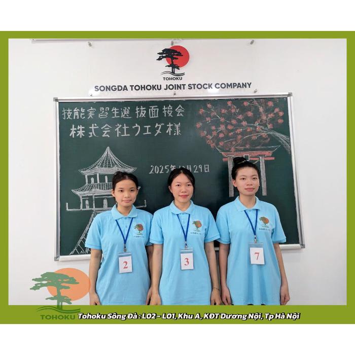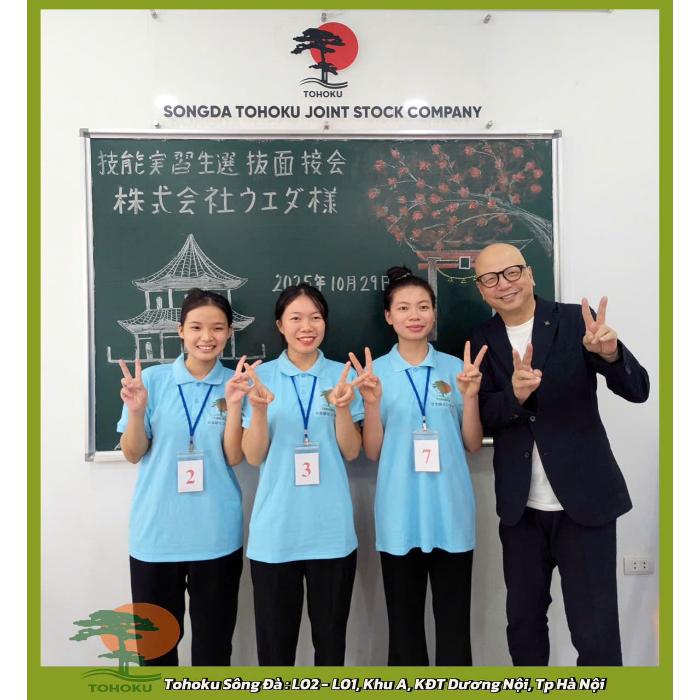 Công ty cổ phần Tohoku Sông Đà xin chúc mừng 03 bạn học viên đã trúng tuyển Đơn hàng: Đóng gói công nghiệp tại Fukuoka , vừa phỏng vấn ngày 29/10/2025 tại văn phòng Công ty. Các bạn học viên đã trúng tuyển như sau: