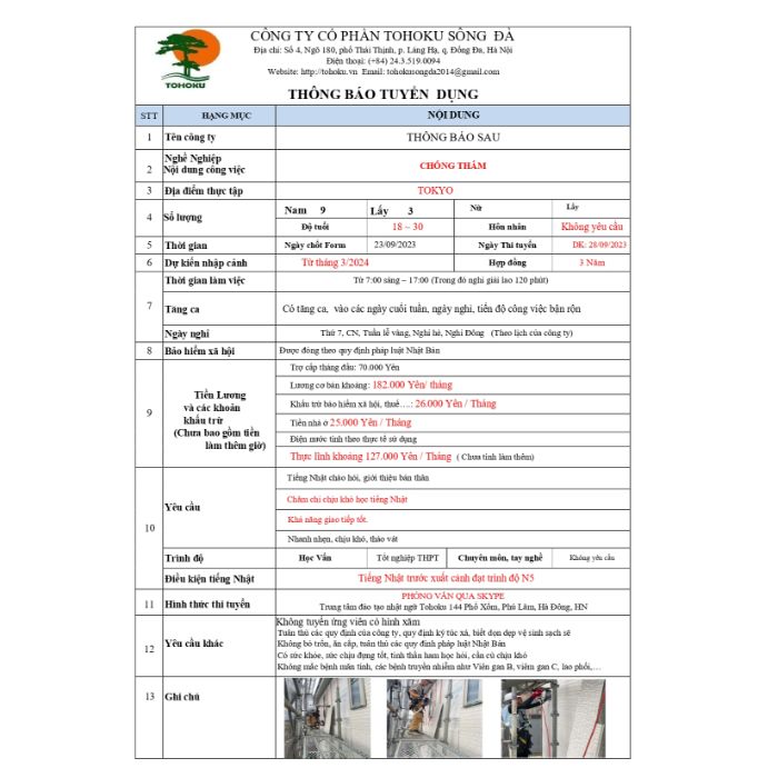 Mọi thông tin chi tiết về chương trình TTS Nhật Bản vui lòng liên hệ: