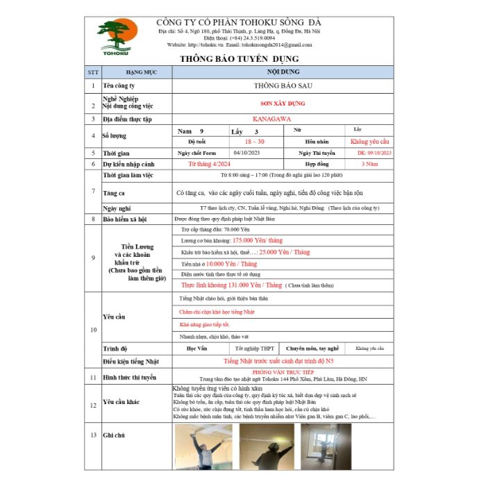 Trong lúc đó, các yêu cầu tuyển dụng vẫn tới tấp bay về TOHOKU. Các bạn là những thanh niên may mắn khi đến đúng thời điểm đón đầu những cơ hội mới....
