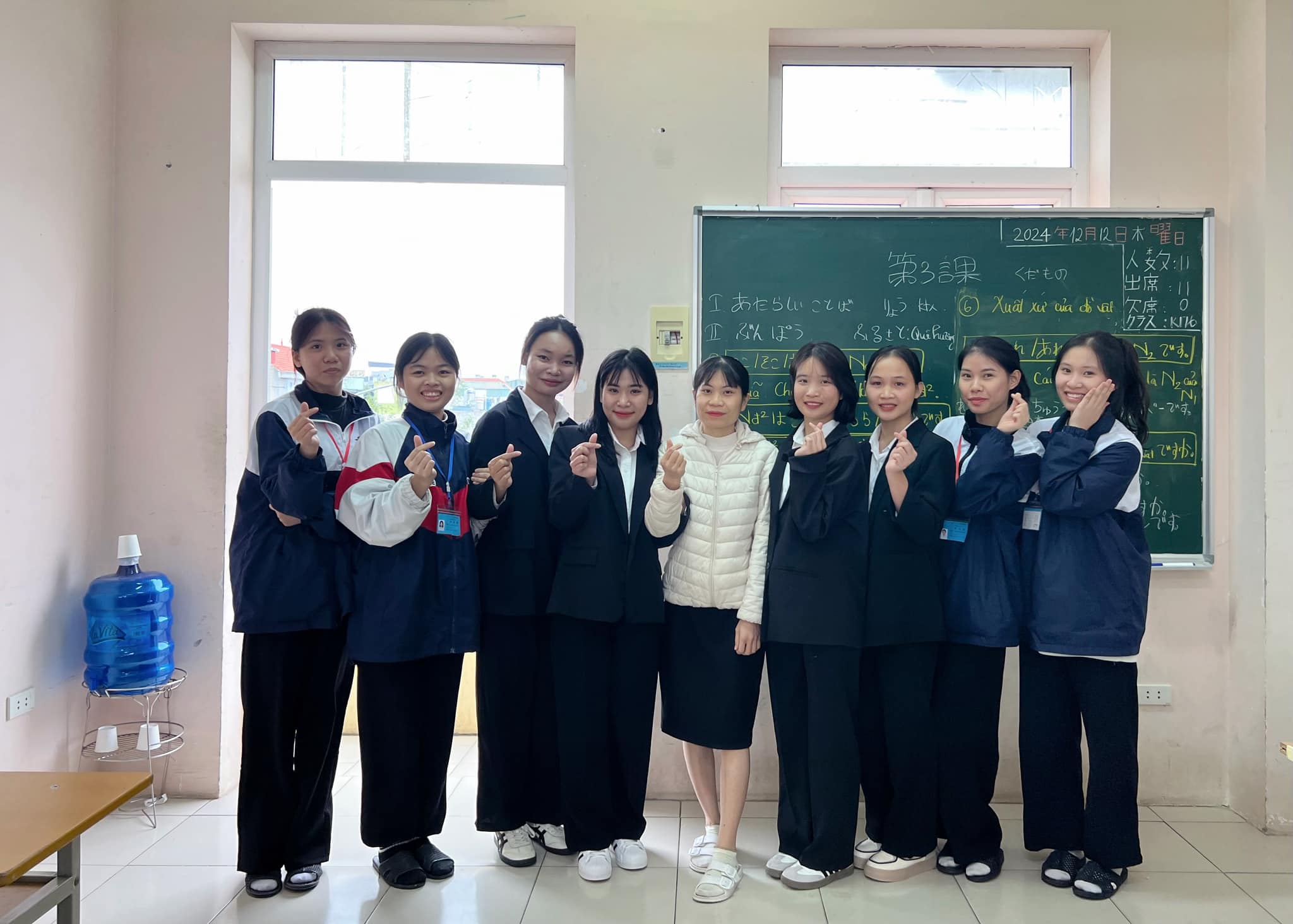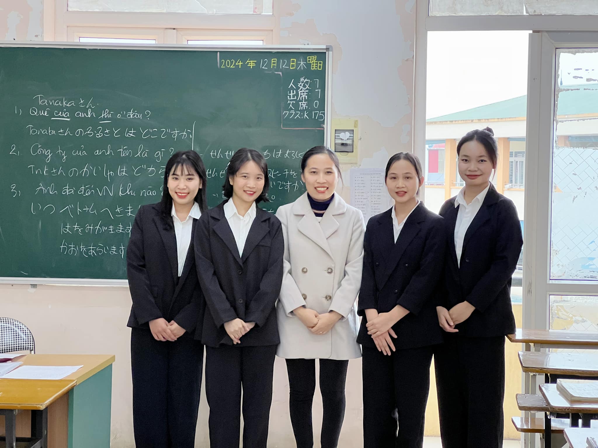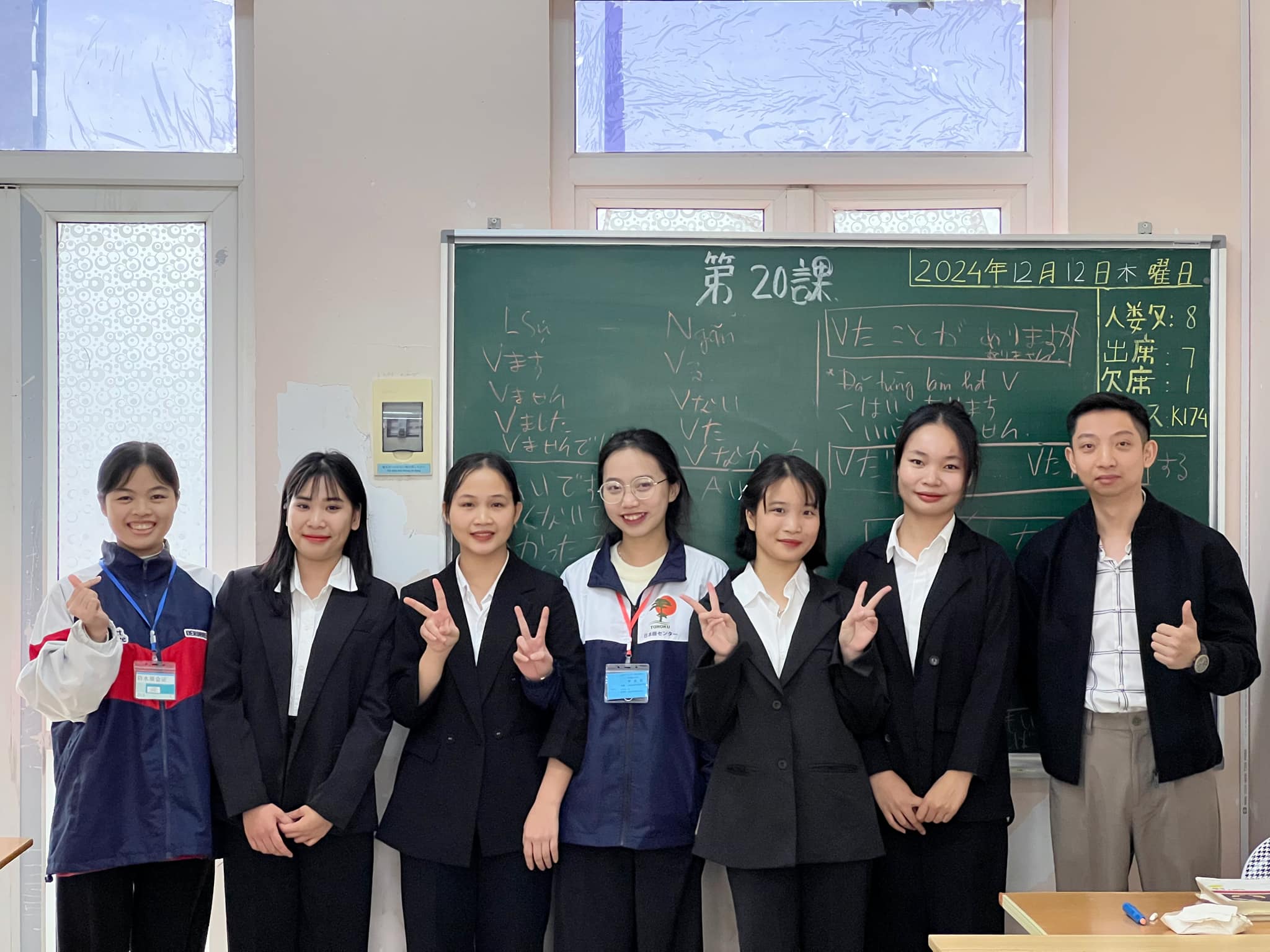 Học viên chụp ảnh lưu niệm cùng thầy, cô tại trung tâm Tohoku Sông Đà