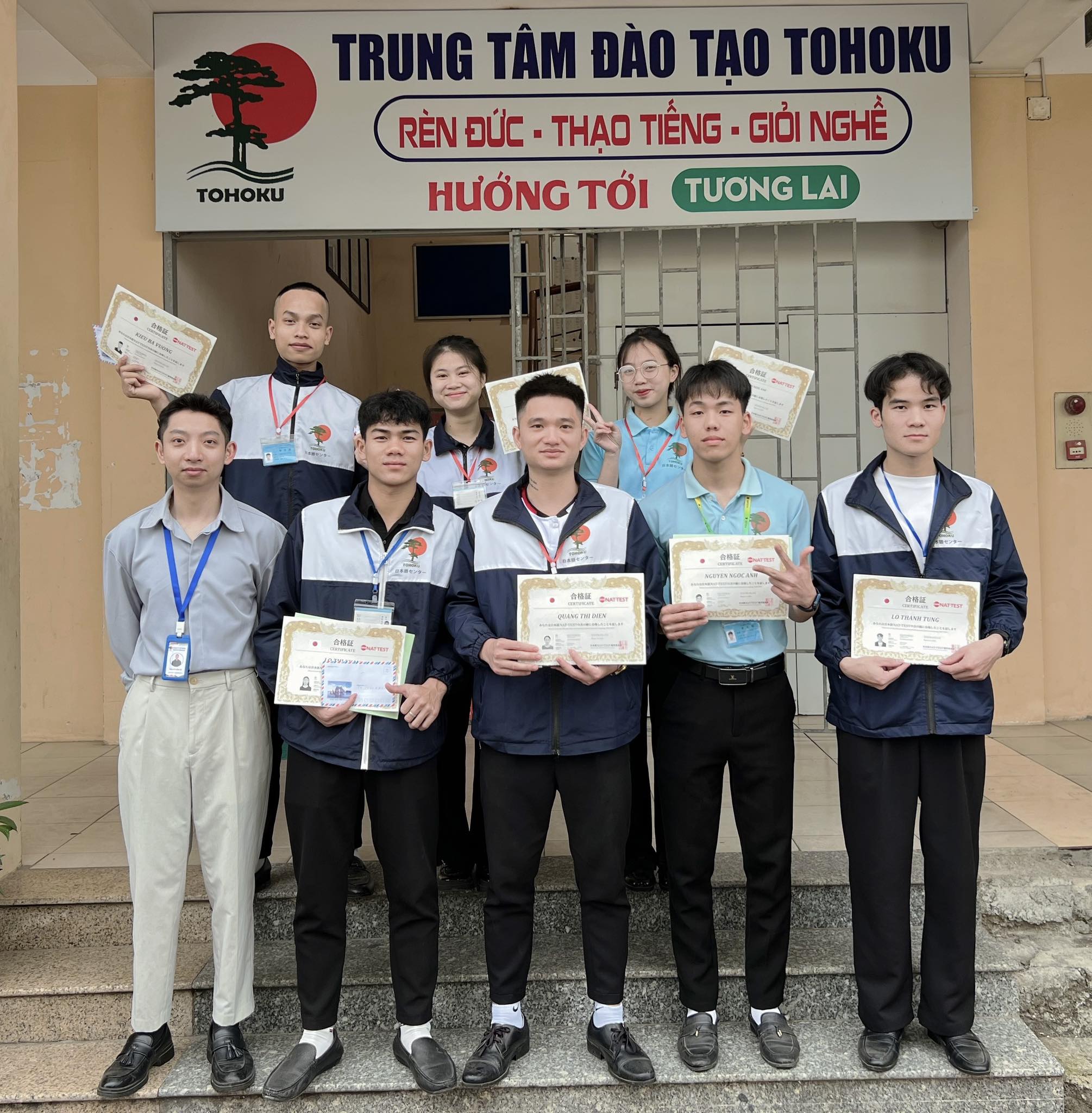 Chúng tôi xin gửi lời chúc mừng nồng nhiệt và vô cùng tự hào đến 07 TTS (Thực Tập Sinh) tại Trung Tâm Tohoku Sông Đà, những học viên xuất sắc đạt chứng chỉ JLPT N5 trong kỳ thi vừa qua. Đây là một cột mốc quan trọng trong hành trình học tiếng Nhật của các bạn và là thành quả đáng tự hào sau quá trình nỗ lực không ngừng nghỉ.