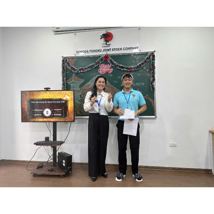 Cứ hàng tháng, Các bạn học viên Nhà Tohoku đều có một hoạt động tập thể gắn kết cùng nhau. Và trong không khí rộn ràng của mùa Giáng Sinh 2025 và chào mừng năm mới 2026, Tohoku đã tổ chức một buổi Noel thật vui vẻ ấm cúng, nơi mọi người cùng nhau chia sẻ niềm vui, tiếng cười, những khoảnh khắc đáng nhớ và thêm thật nhiều những kiến thức mới mẻ thực tế . Đây không chỉ là dịp để Tohoku gắn kết với các bạn học viên, mà còn là khoảnh khắc để lan tỏa tinh thần yêu thương, sẻ chia và hy vọng đến tất cả mọi người đã và đang đồng hành cùng TOHOKU ![]()