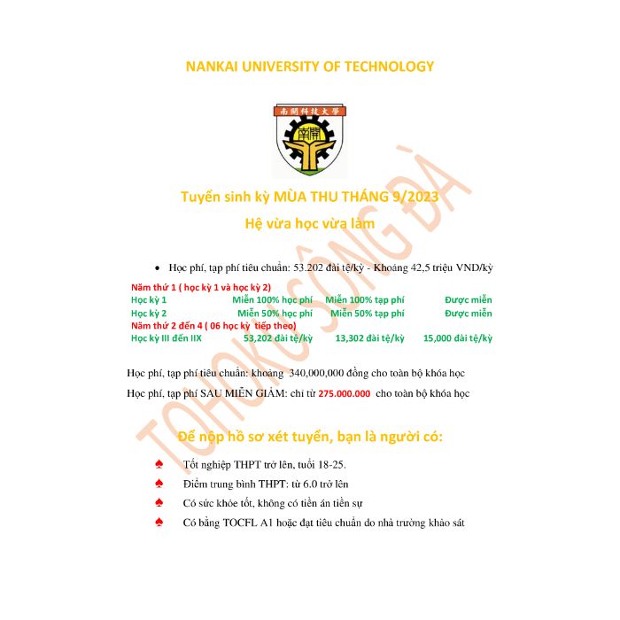 Tên tiếng Anh: Nankai University of Technology