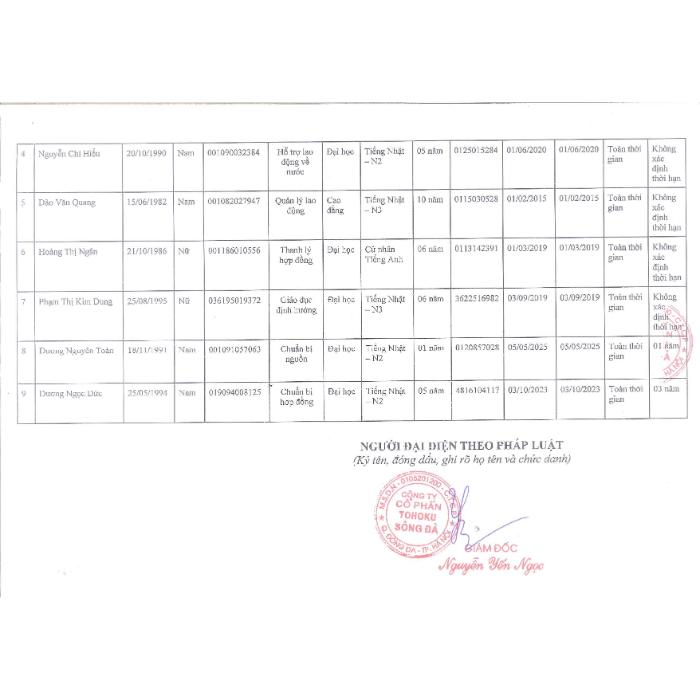 DANH SÁCH NHÂN VIÊN NGHIỆP VỤ THỰC HIỆN HOẠT ĐỘNG DỊCH VỤ ĐƯA NGƯỜI LAO ĐỘNG VIỆT NAM ĐI LÀM VIỆC Ở NƯỚC NGOÀI THEO HỢP ĐỒNG