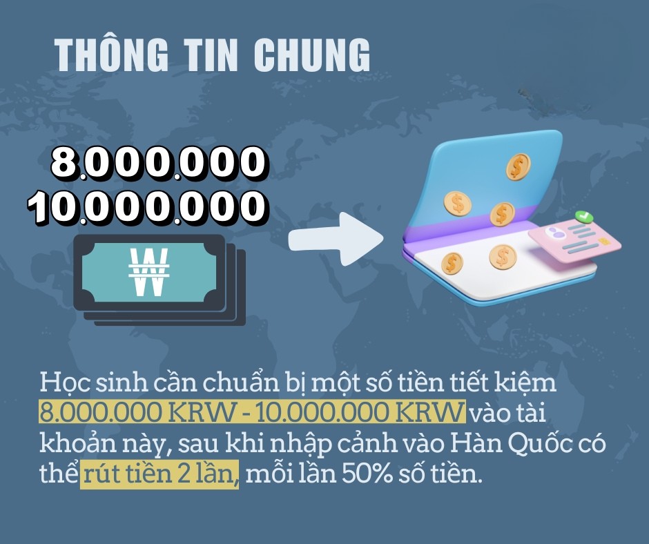 Mục đích của tài khoản này là để đảm bảo chi phí du học, bao gồm học phí và sinh hoạt phí tối thiểu trong thời gian đầu tại Hàn Quốc. Sau khi nạp tiền, tài khoản sẽ được phong tỏa và chỉ có thể rút theo lộ trình quy định sau khi sinh viên đã sang Hàn và học tập ổn định.