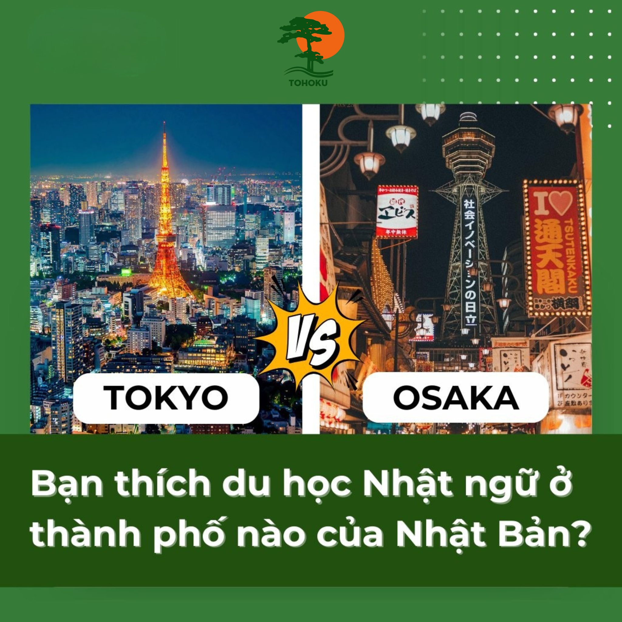 Tokyo phù hợp cho những ai muốn cạnh tranh trong môi trường quốc tế, mở rộng cơ hội nghề nghiệp. Osaka lại lý tưởng cho bạn trẻ mong muốn học tập thực tế, phát triển kỹ năng và có môi trường học tập gắn kết.