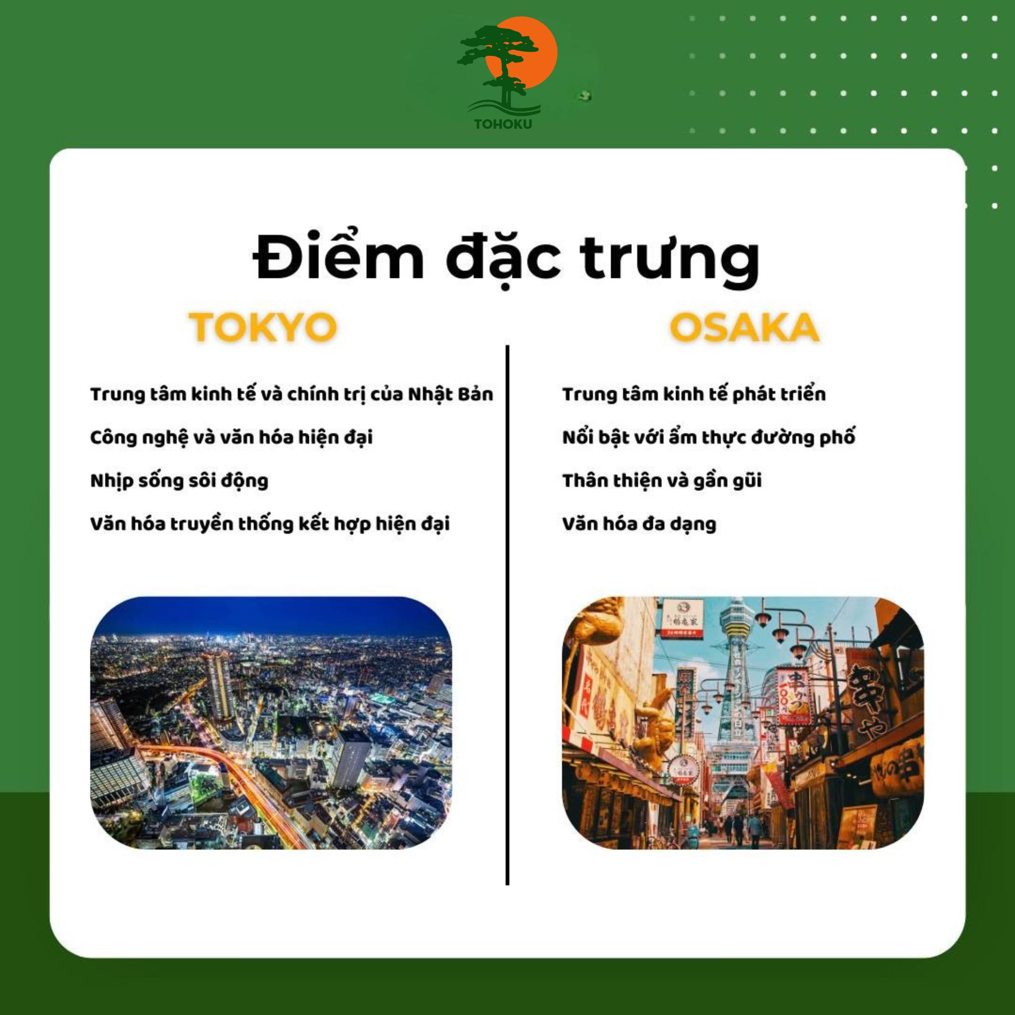 Tokyo phù hợp với người yêu thích sự hiện đại, thử thách, cơ hội nghề nghiệp rộng mở. Osaka lại dành cho những bạn muốn trải nghiệm cuộc sống gần gũi, thân thiện, và tận hưởng văn hóa ẩm thực phong phú.