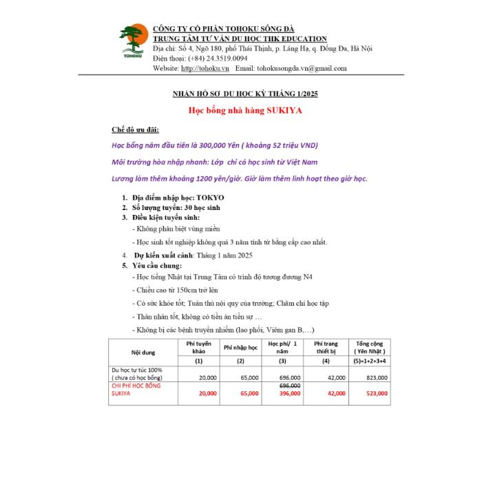TUYỂN SINH HỌC BỔNG NHÀ HÀNG SUKYIA KỲ THÁNG 1/2025