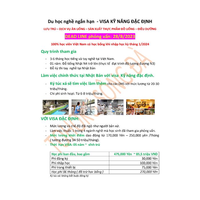 Học viện Ngôn ngữ quốc tế FUJI đạt tiêu chuẩn đào tạo Du học sinh Kỹ năng đặc định. Kỳ tháng 1/2024 tuyển sinh với 04 ngành nghề Lưu Trú - Sản xuất thực phẩm đồ uống - Điều Dưỡng - Chế biến thực phẩm. Một cơ hội tuyệt vời cho các bạn đang tìm kiếm cơ hội làm việc và sinh sống lâu dài cùng gia đình tại Nhật Bản.
