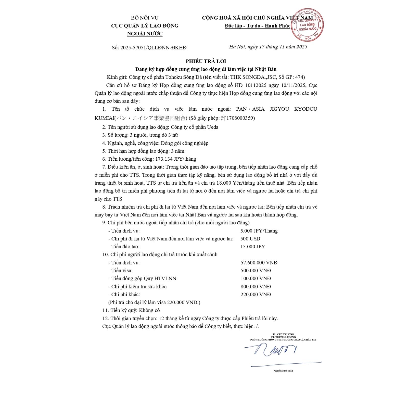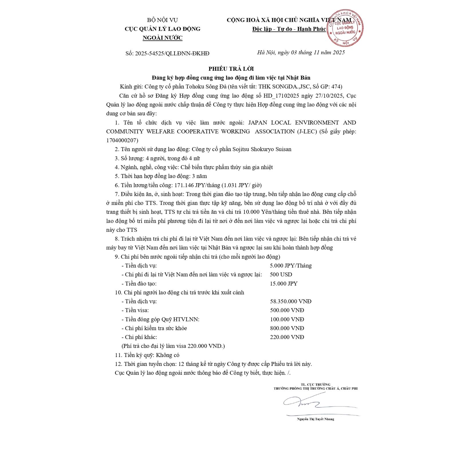 HỢP ĐỒNG ĐƯỢC CỤC QUẢN LÝ LAO ĐỘNG NGOÀI NƯỚC CHẤP THUẬN THÁNG 11/2025