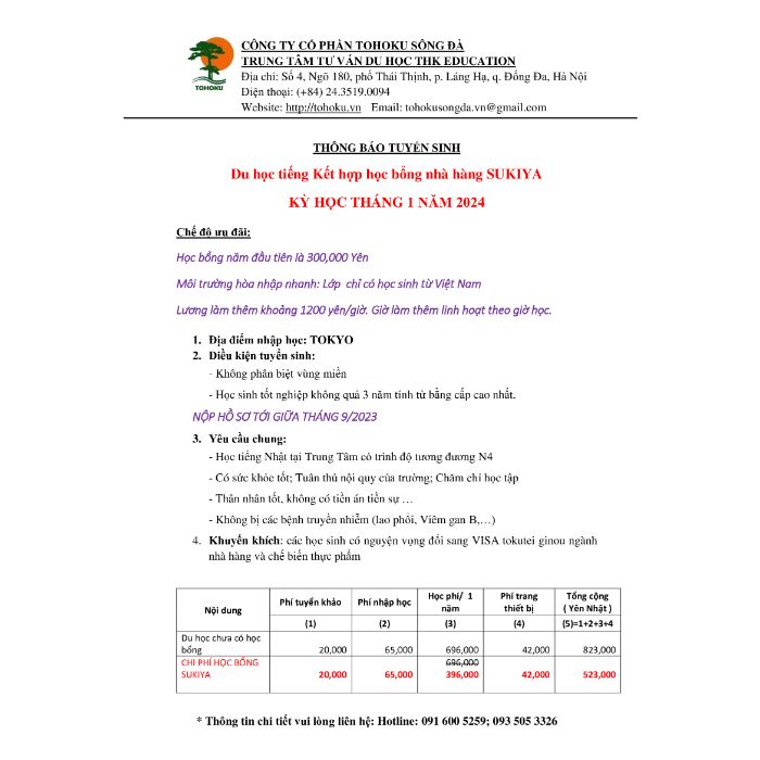 Mọi thông tin về Chương trình du học Nhật Bản xin vui lòng liên hệ: