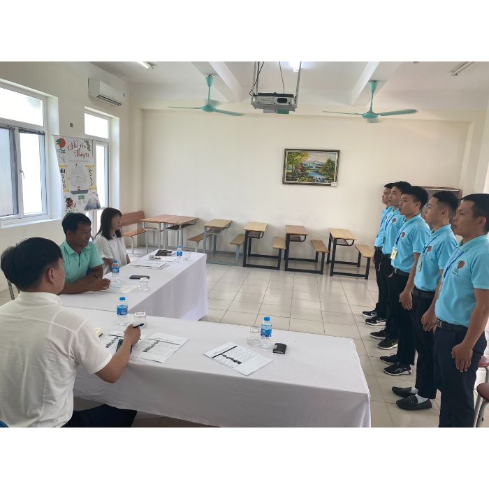 Ảnh: Các bạn đang phỏng vấn cho công việc thi công máy công trình tại tỉnh Shiga. Được rèn trước tác phong nghiêm túc, dáng đứng, ngồi, giọng nói.... nên các bạn cũng tự tin lên nhiều.
