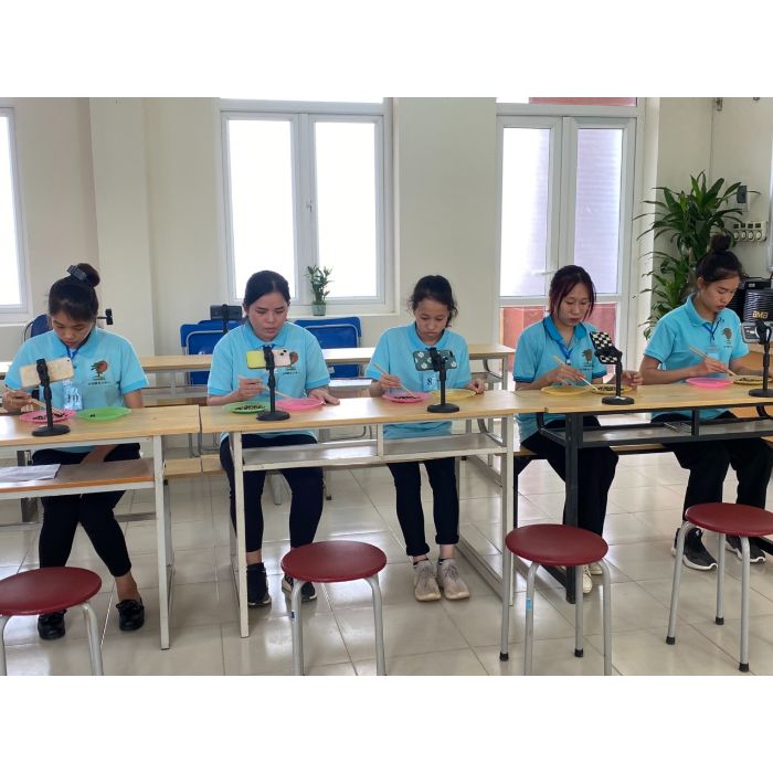 Các bạn tuy rất run nhưng đã thực hiện tốt các yêu cầu của Giám đốc. Thể hiện tính kiên nhẫn, tỉ mỉ qua bài test gắp lựa các hạt đỗ đủ mầu ( y như cô Tấm ngày xưa), thể hiện đôi tay khéo léo chính xác qua bài test gấp giấy origami. Và cuối cùng 5 cô gái tự tin, xinh xắn đã hoàn thành xuất sắc bài thi, SẼ XUẤT CẢNH SAU 06 THÁNG NỮA, dự kiến vào tháng 06/2023.