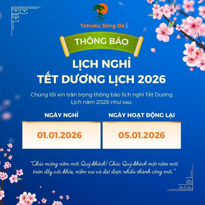 Công ty cổ phần Tohoku Sông Đà xin trân trọng thông báo đến Quý Khách hàng và Quý Đối tác lịch nghỉ Tết Dương Lịch năm 2026 như sau: