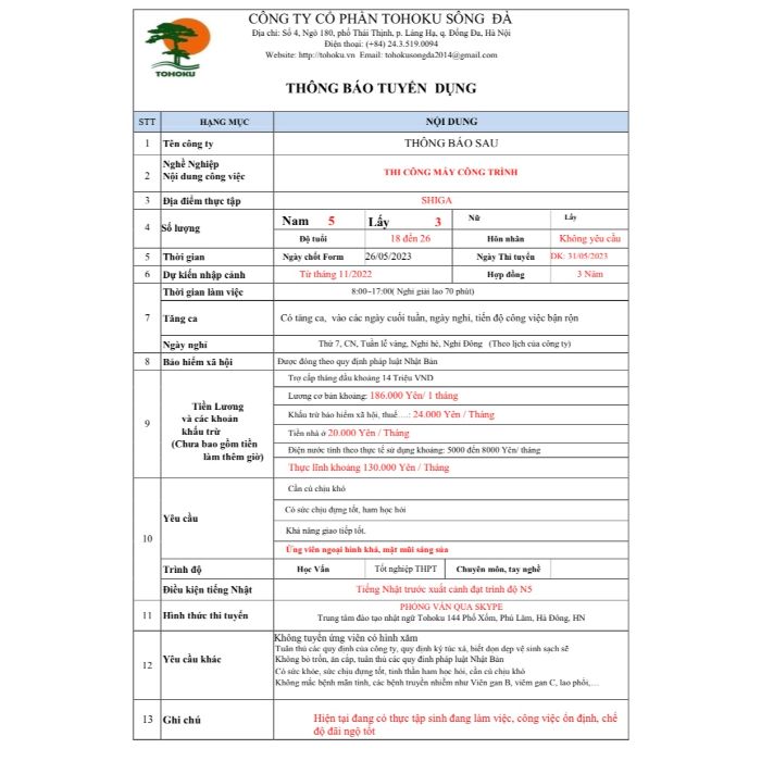Mọi thông tin chi tiết về chương trình TTS Nhật Bản vui lòng liên hệ: