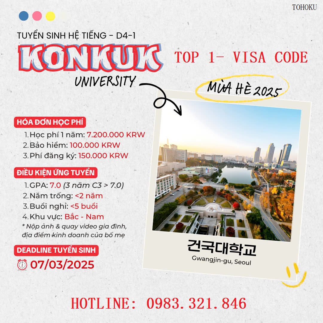 THÔNG BÁO TUYỂN SINH VISA D4-1 TRƯỜNG ĐẠI HỌC KONKUK TOP 1 MIỄN PHỎNG VẤN ĐẠI SỨ QUÁN HÀN QUỐC