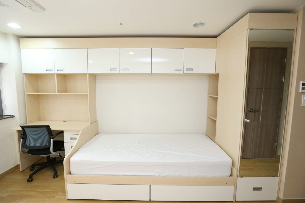 – Trang thiết bị cơ bản: giường, bàn học, ghế, kệ để giày, máy rút tiền,..
