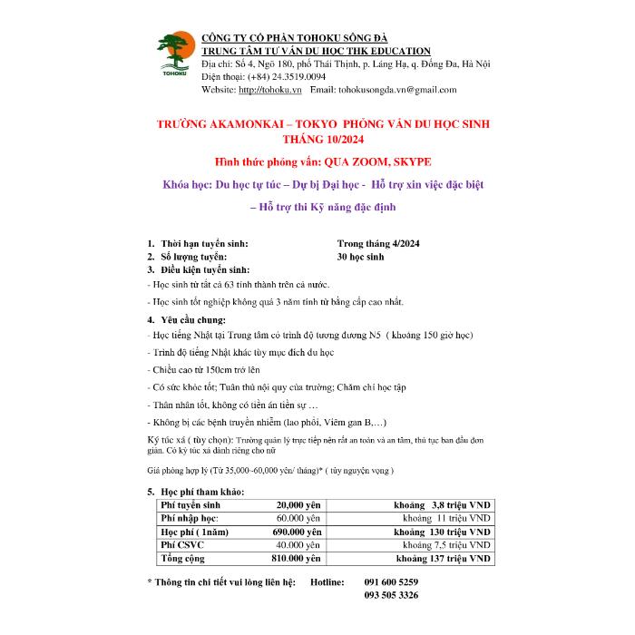 Mọi thông tin chi tiết về Chương trình Du học Nhật Bản vui lòng liên hệ: