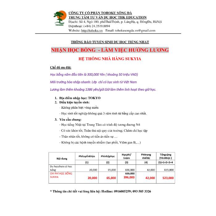 Mọi thông tin chi tiết về chương trình TTS Nhật Bản vui lòng liên hệ: