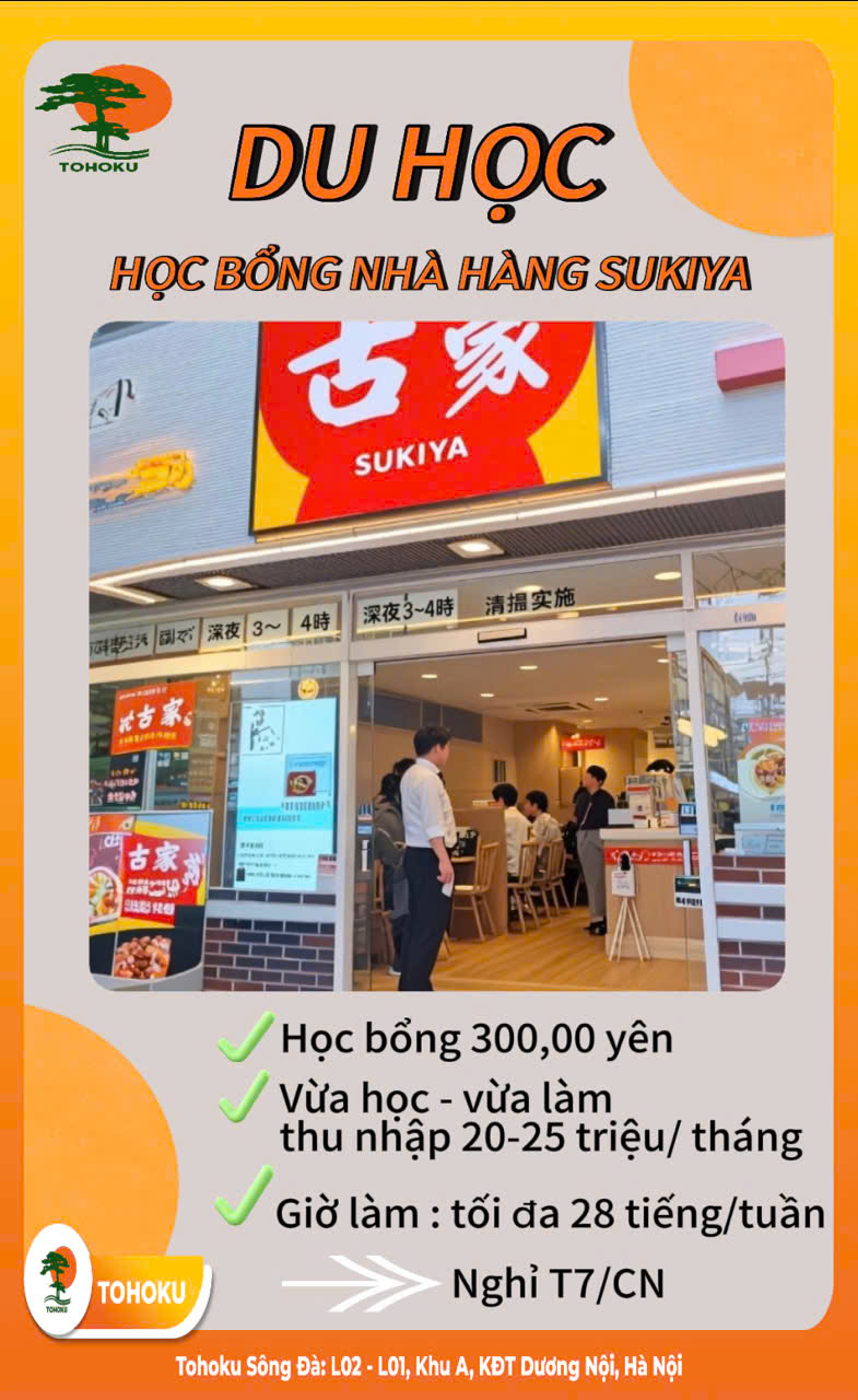 CÔNG TY CỔ PHẦN TOHOKU SÔNG ĐÀ XIN THÔNG BÁO TUYỂN SINH DU HỌC NHẬT BẢN - HỌC BỔNG NHÀ HÀNG SUKIYA - KỲ NHẬP HỌC THÁNG 7 VÀ THÁNG 10/2026