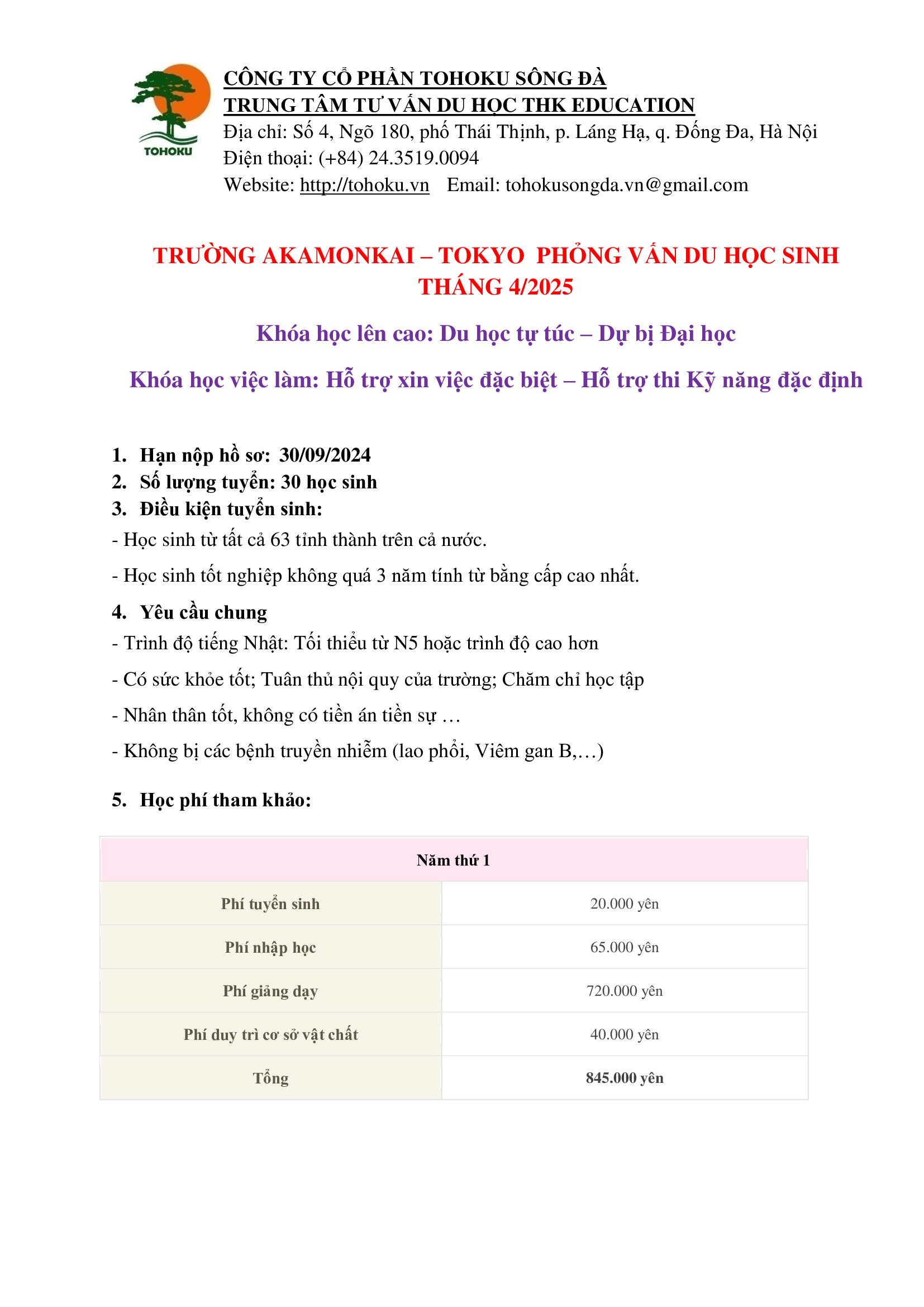 Mọi thông tin chi tiết về Chương trình Du học Nhật bản vui lòng liên hệ: