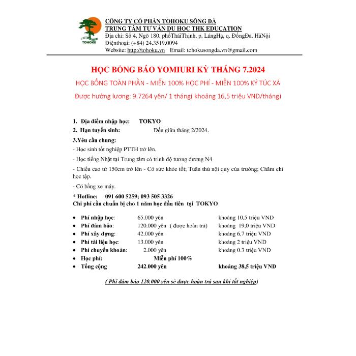 HỌC BỔNG BÁO YOMIURI THÁNG 7/2024 Chương trình Du học học bổng do Tòa soạn báo YOMIURI tài trợ cho các bạn học sinh du học trường tiếng KỲ NHẬP HỌC THÁNG 7/2024