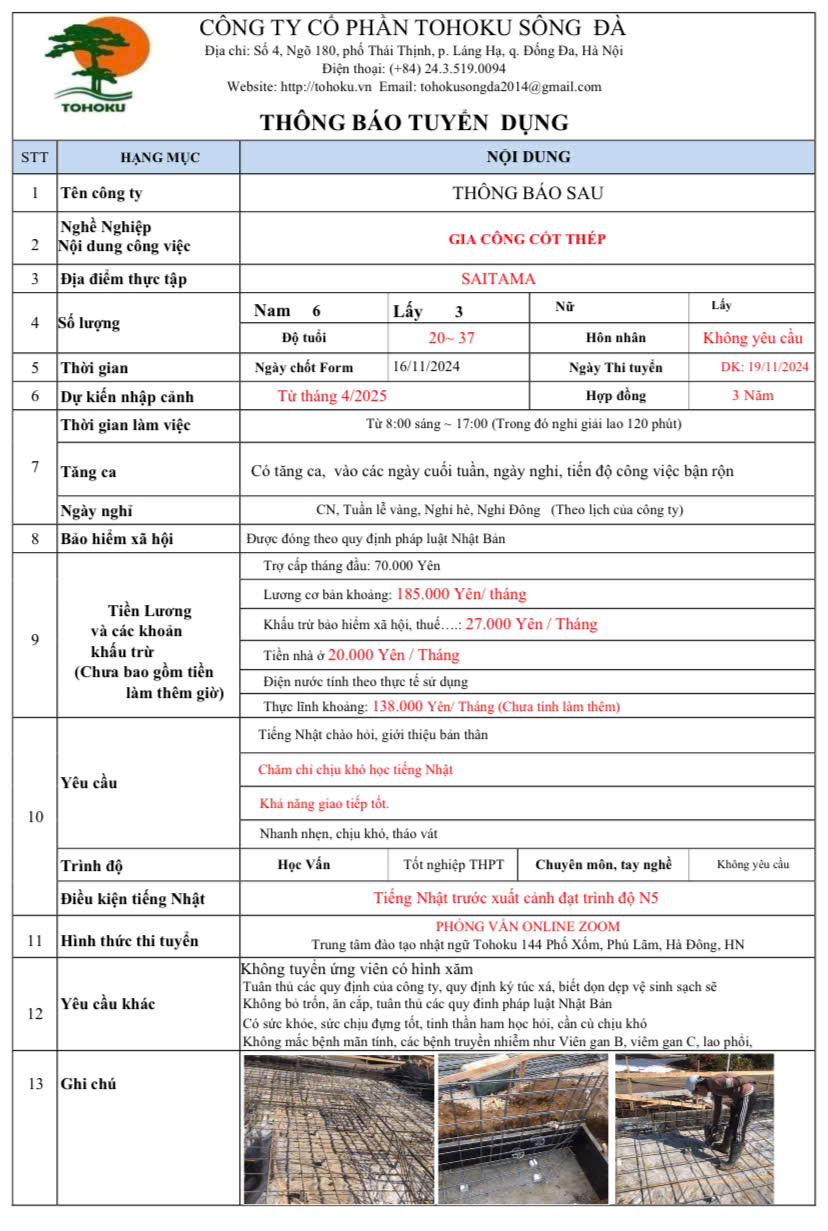 Mọi thông tin chi tiết về Chương trình TTS Nhật Bản vui lòng liên hệ: