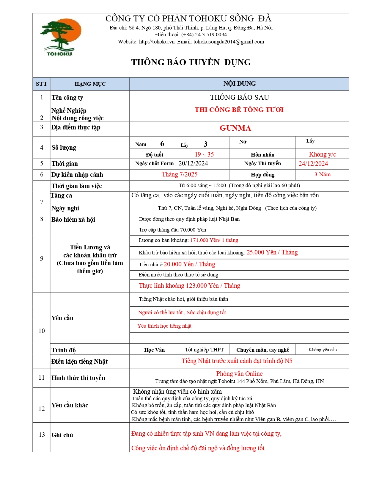NGÀNH NGHỀ : THI CÔNG BÊ TÔNG TƯƠI THÁNG 12/2024