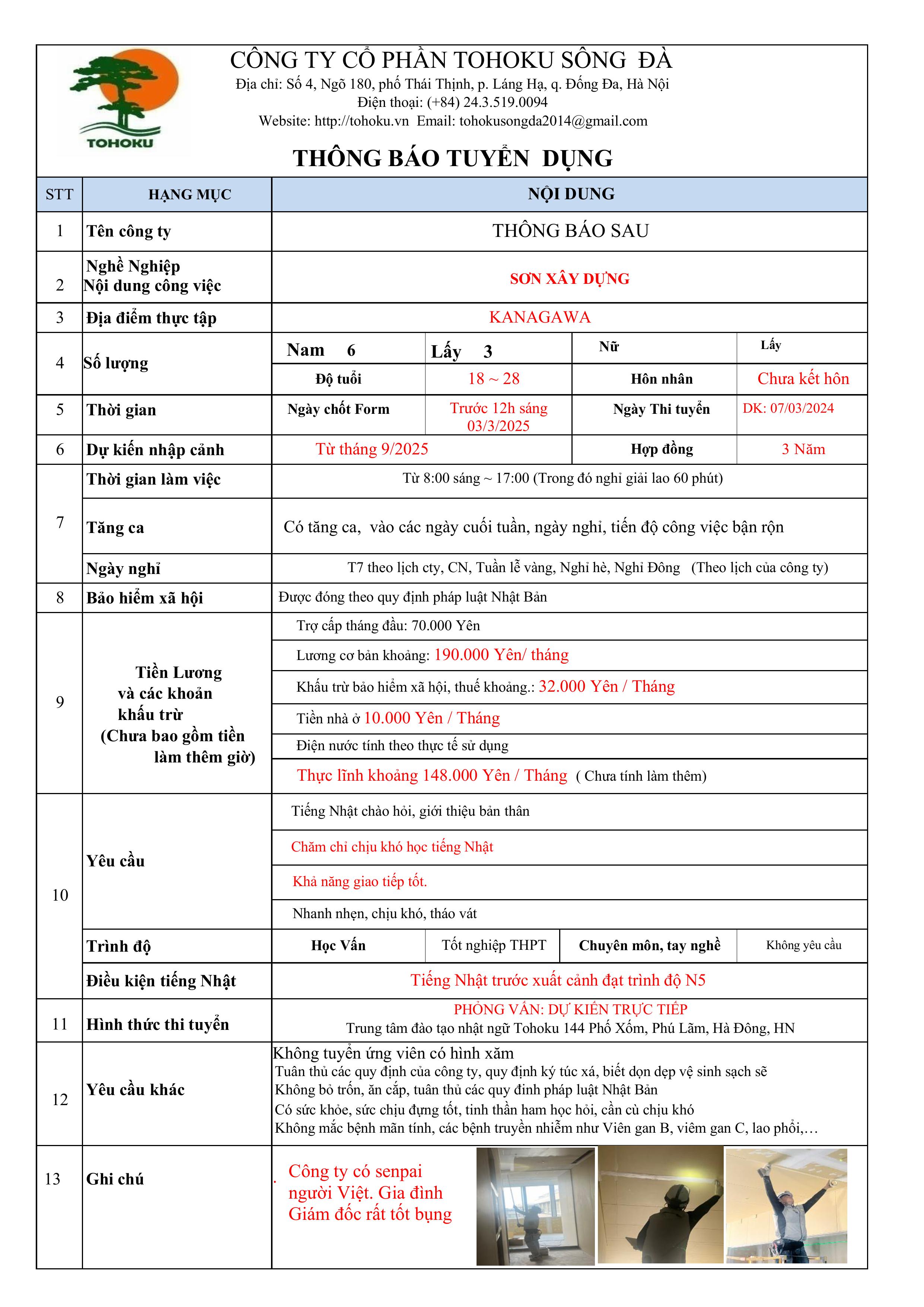 CÔNG TY CỔ PHẦN TOHOKU SÔNG ĐÀ