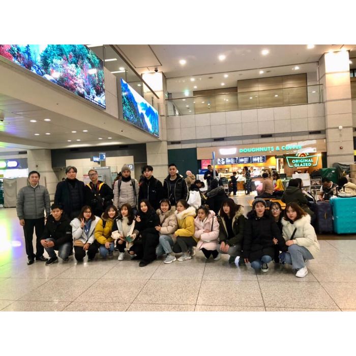 Các bạn Du học sinh chụp ảnh lưu niệm tại sân bay Incheon Hàn Quốc